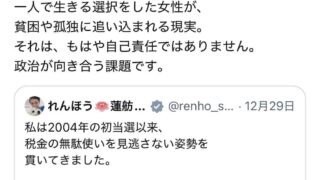 talk嫌儲 蓮舫氏「次に取り組みたいのはおひとり様政策です」 → おひとり様男性から批判殺到