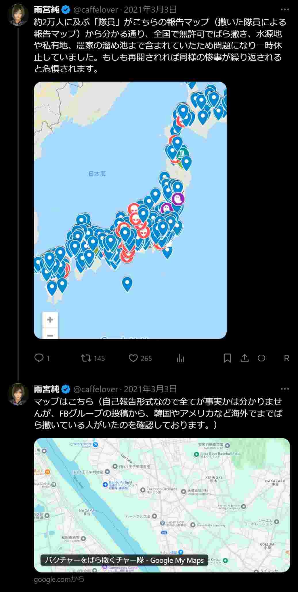 3年も前から参政党の危険性を訴えていた人「全国の海や田んぼに無許可で【バクチャー】なる黒い物体をバラ撒くキチゲェ集団を追っていたら神谷に辿り着いた」