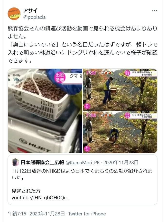 熊森協会は林道横に熊の撒き餌をしてる人達
