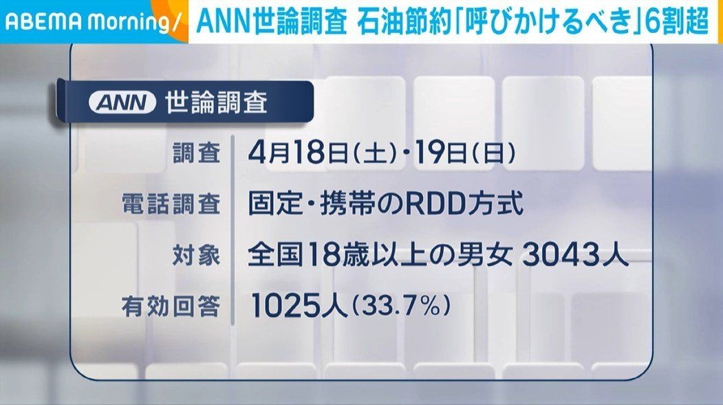 ANN世論調査 石油節約「呼びかけるべき」6割超