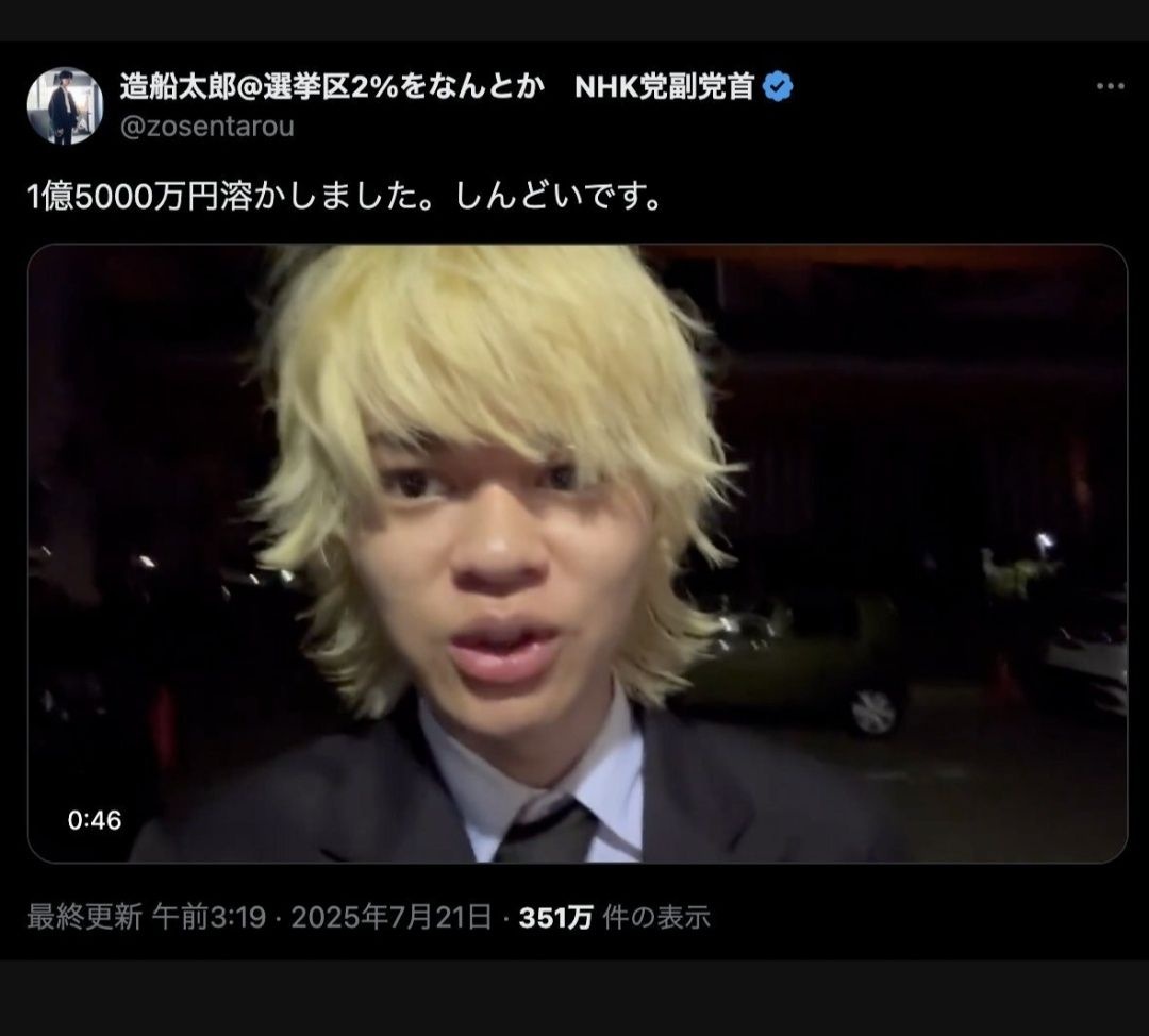 - 造船太郎@選挙区2%をなんとか NHK党副党首 @zosentarou