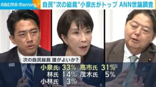 自民「次の総裁」 小泉農水大臣がトップ ANN世論調査