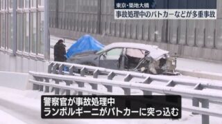 talkニュー速+ 【東京】ランボルギーニがパトカーに突っ込む…築地大橋で3件の事故が相次ぐ 6人ケガ