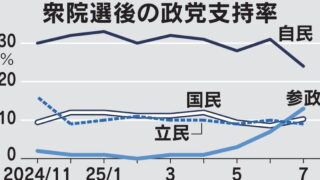 talkニュー速+ 参院比例投票先、国民民主が急落 自民、24%へアップ 時事世論調査