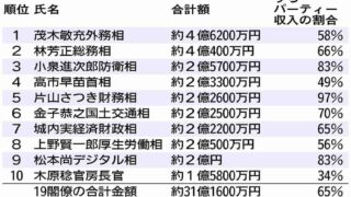 政治ニュース+ 高市内閣の全閣僚4年間で企業・団体献金31億1600万円/65%がパーティー収入 | しんぶん赤旗調べ