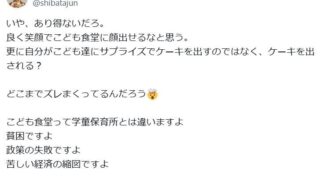 talk嫌儲 【画像あり】シンガーソングライター柴田淳「いや、あり得ないだろ」 自民党総裁候補が子ども食堂で誕生日ケーキを出される姿に