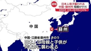 talk嫌儲 中国・蘇州市で日本人の母子襲われる 母親が殴られケガ 日本人に対するヘイトがエスカレートしててやべーよ