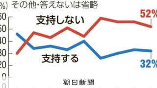 talkニュー速+ 【朝日新聞全国世論調査】現金給付 「評価せず」 67%、内閣支持率は32%(前回5月は33%)と横ばい