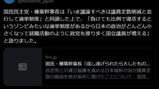 talk嫌儲 国民民主の榛葉が「比例復活はゾンビ!こんな制度があるから小さい政治家ばっかりになるんだよ!」と批判⇒とんでもない所に被弾してしまうwww