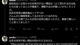 talk嫌儲 記者「国民民主が女性からの支持が少ない理由は?」玉木「女には私たちの言ってることが複雑で理解するのが難しいから」⇒まんさん集団ブチギレ