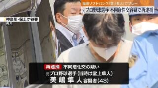 talkニュー速+ 【再逮捕】元プロ野球選手(43)を女子高校生への不同意性交容疑で再逮捕、6月にも不同意わいせつ容疑で逮捕 福岡ソフトバンクホークスで「堂上隼人」の名前でプレー 過去には強制わいせつ罪で実刑判決も