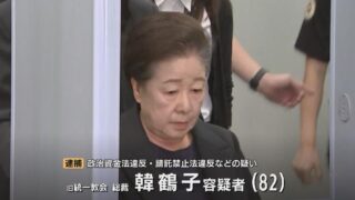 政治ニュース+ 【旧統一教会問題】世界平和統一家庭連合(旧統一教会)の韓鶴子総裁逮捕、林官房長官「自民は関係断絶を徹底」