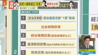 talk嫌儲 維新吉村はん「では政策の優先順位TOP5を発表します。物価高対策は~ドコドコドコ(ドラムの音)」