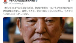 talkニュー速+ 中国大使館、自民党の石破茂前首相の発言「台湾は中国の一部。変えてはならない」をX投稿