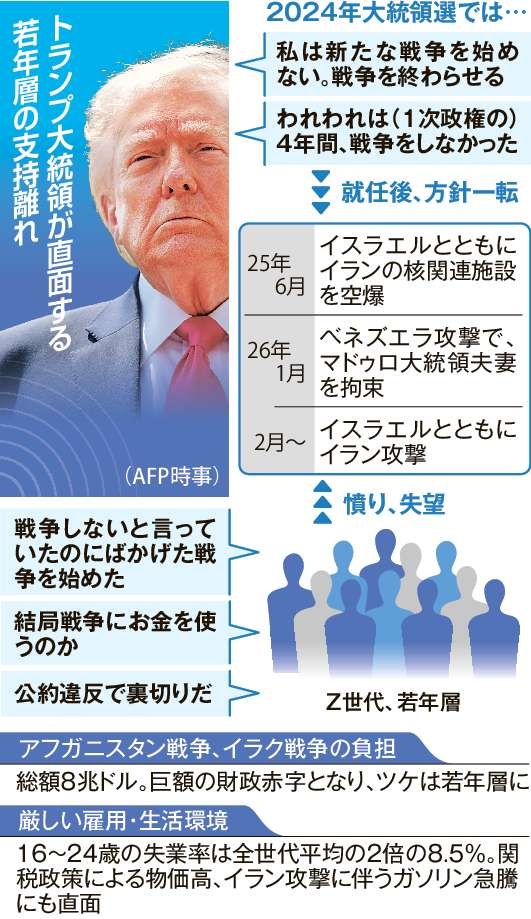 Z世代、トランプ氏支持離れ 公約一変イラン攻撃「裏切りだ」 巨額赤字、幼少期から目の当たり